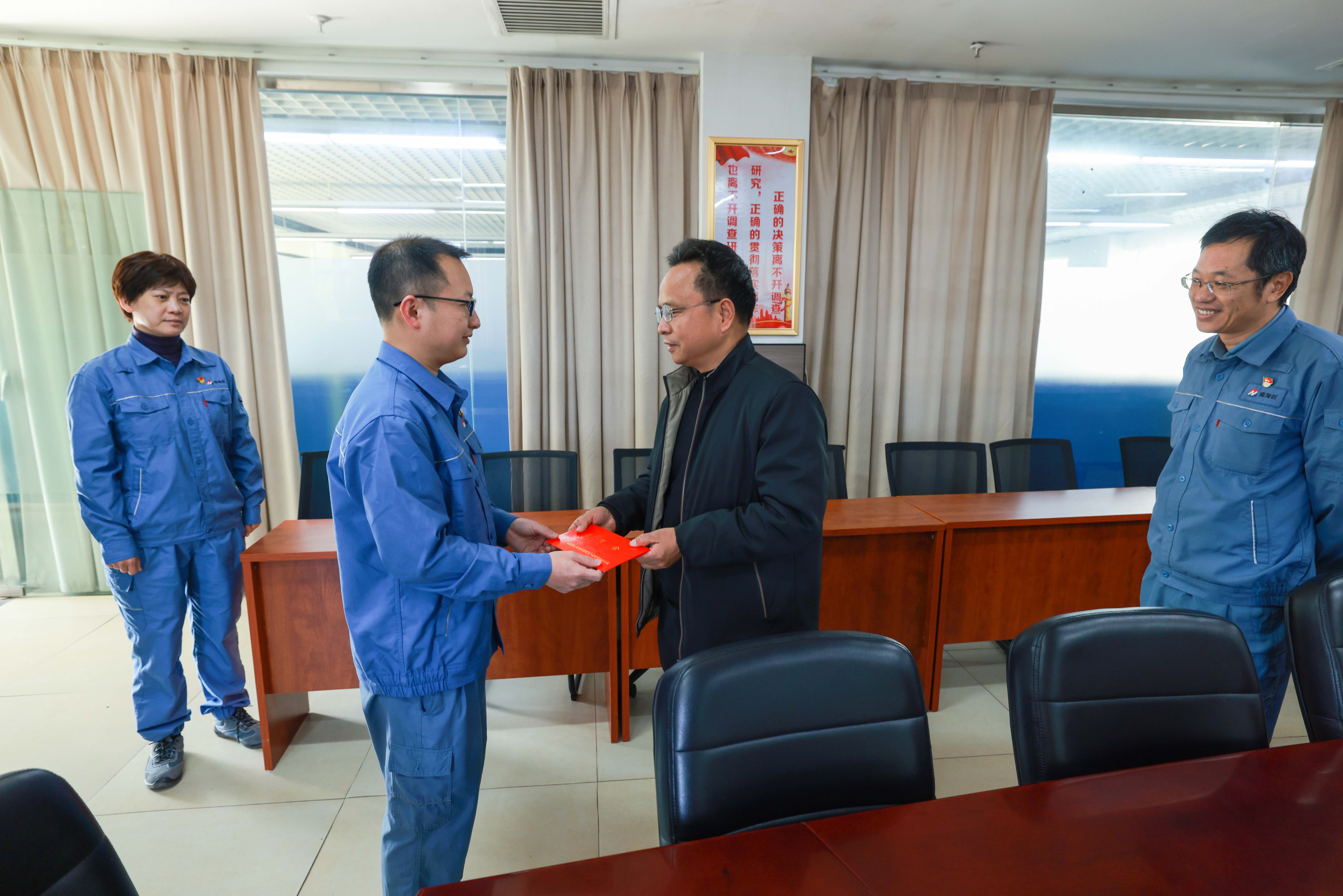 新春将至,情暖人心。省国资委二级巡视员何炎坤、省国资委法规处主任程敬华到福海创开展春节前走访慰问活动。